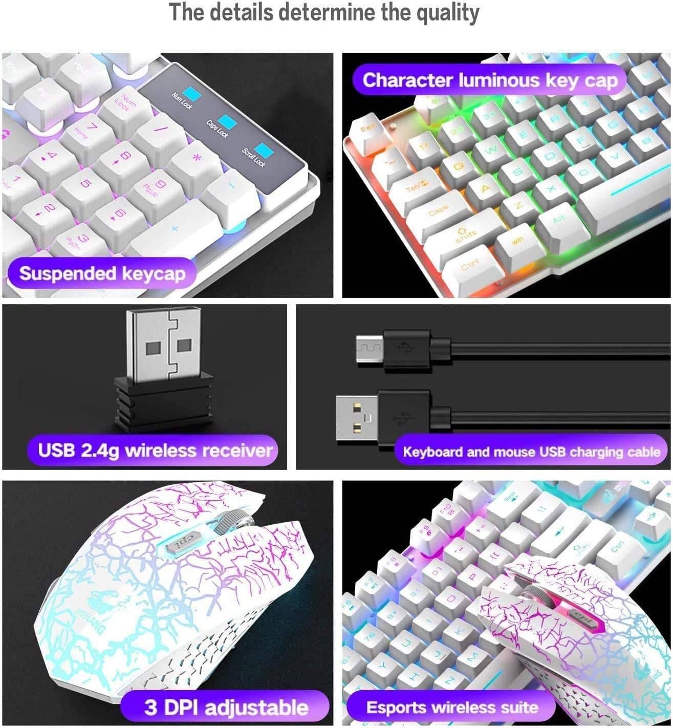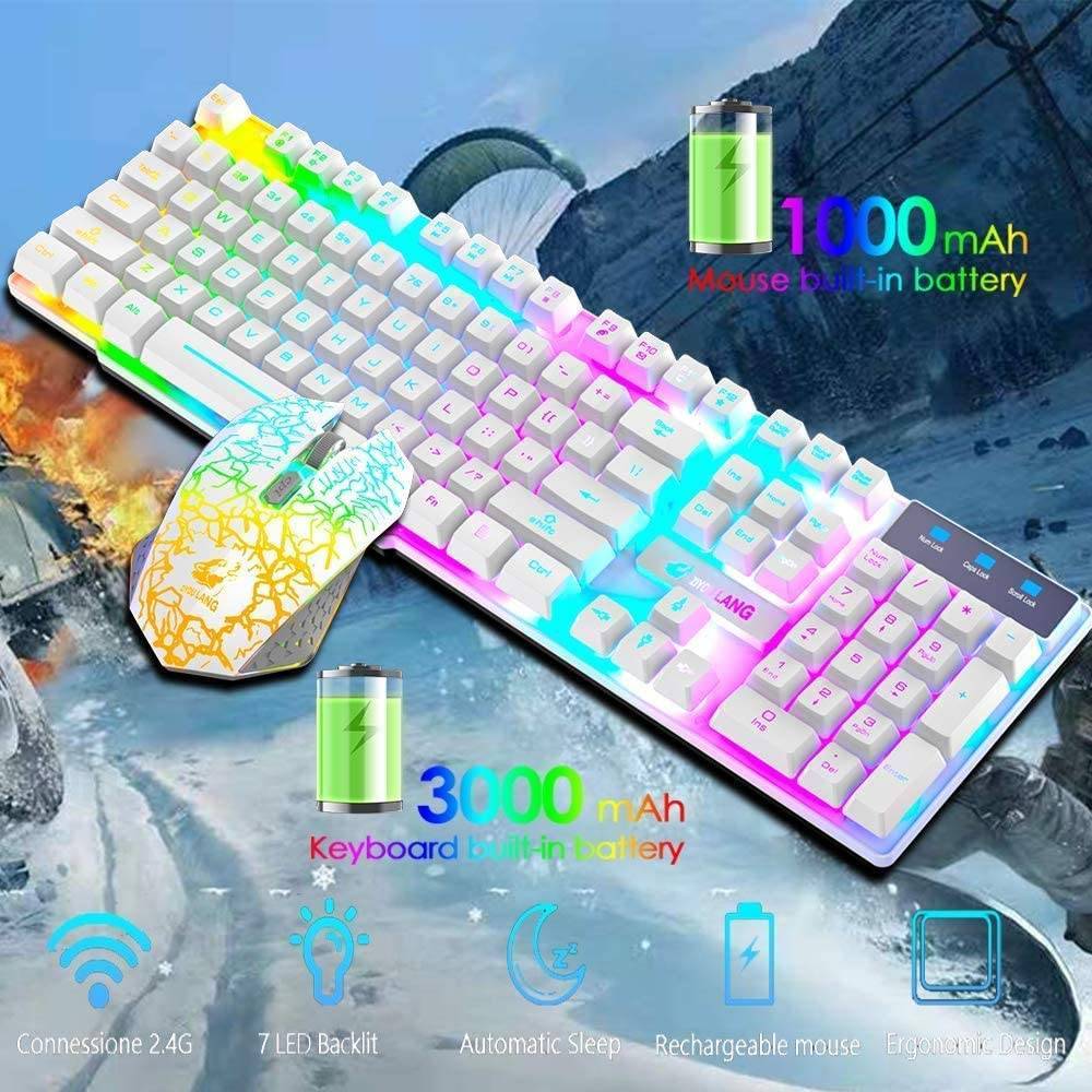 104 Keys Wireless Gaming Keyboard And Mouse Set Rainbow LED Backlit Keyboard
