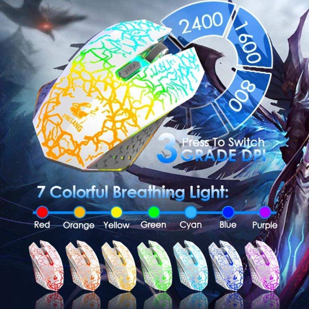 Ergonomic design, 6 keys, made of high-quality ABS plastic, comfortable and durable; a variety of different LED breathing lights automatically change the backlight effect of the cracked mouse to provide unique visual performance and dazzling cool game atmosphere. Separate light switch: you can turn off the mouse light through the light switch on the back of the mouse, so that your mouse battery life is more durable.
