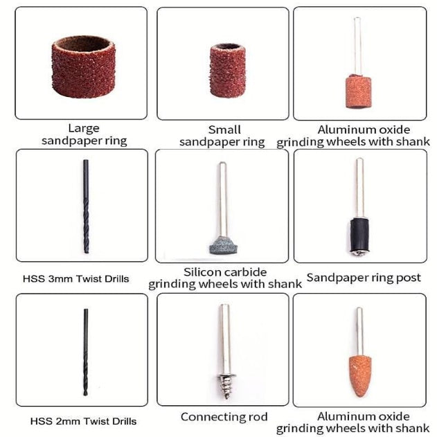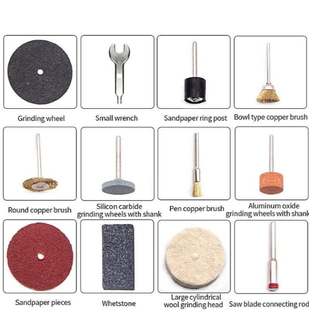 - Complete Kit: Includes small wrench, carbon brush, grinding head, and 186 accessory pieces